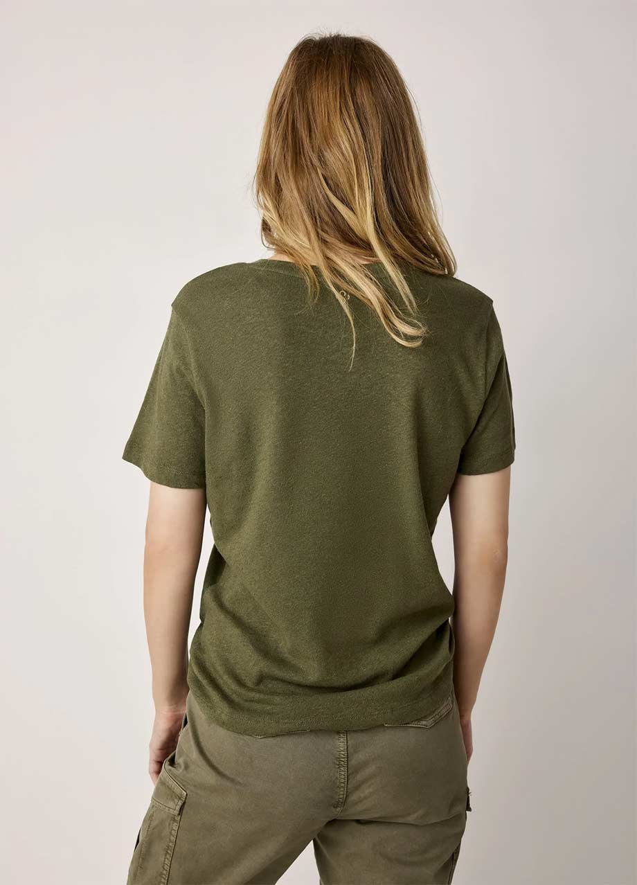T-shirt with foil print and a QR code that directs you to the Summum website. Cotton linen blend, straight fit and round neck.