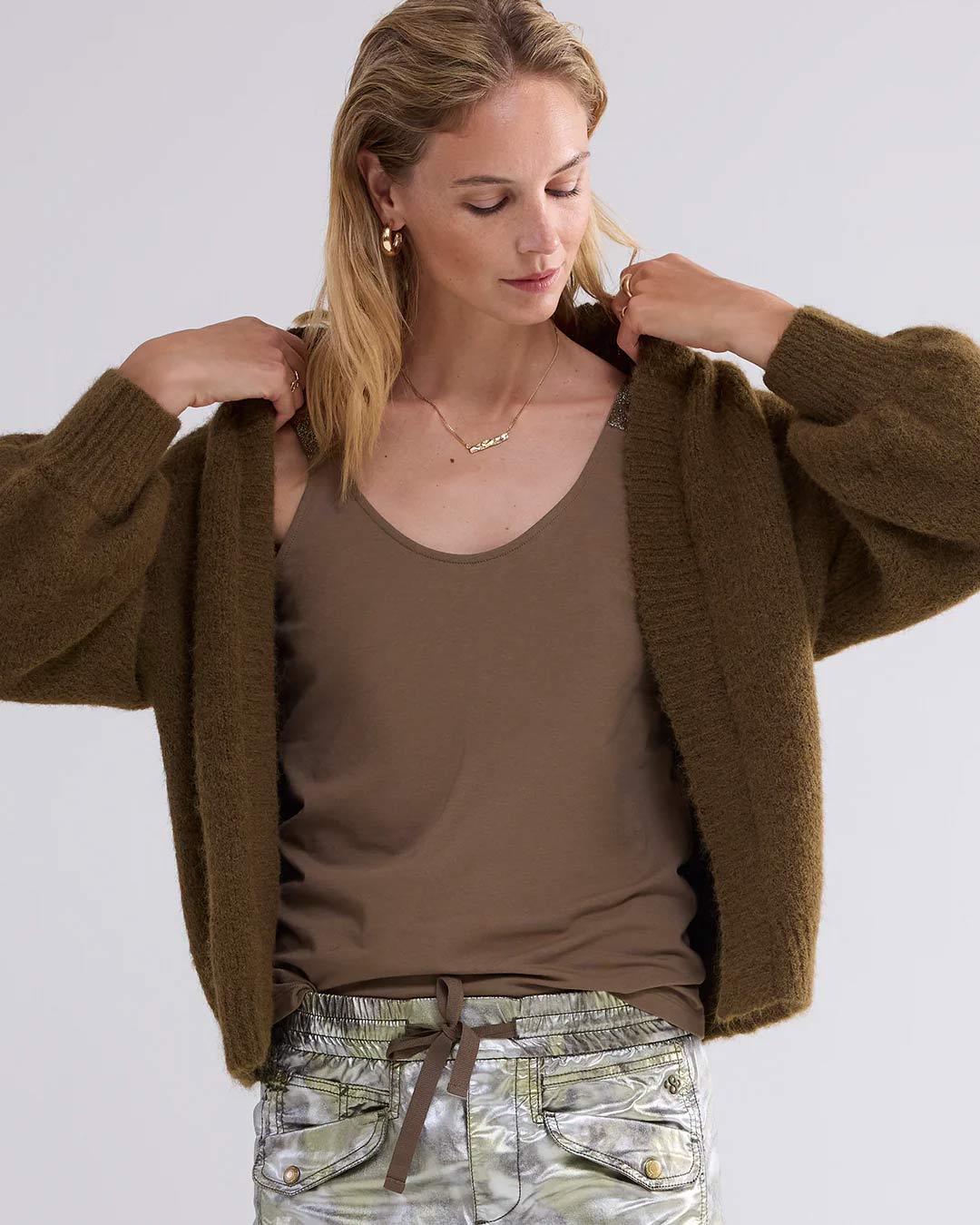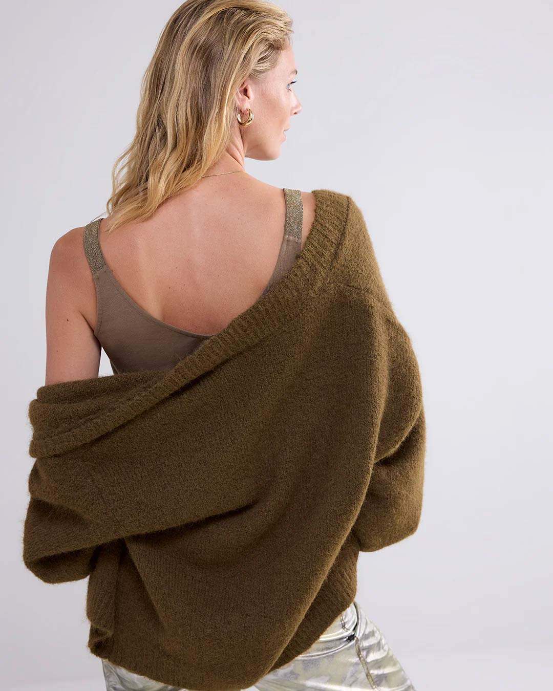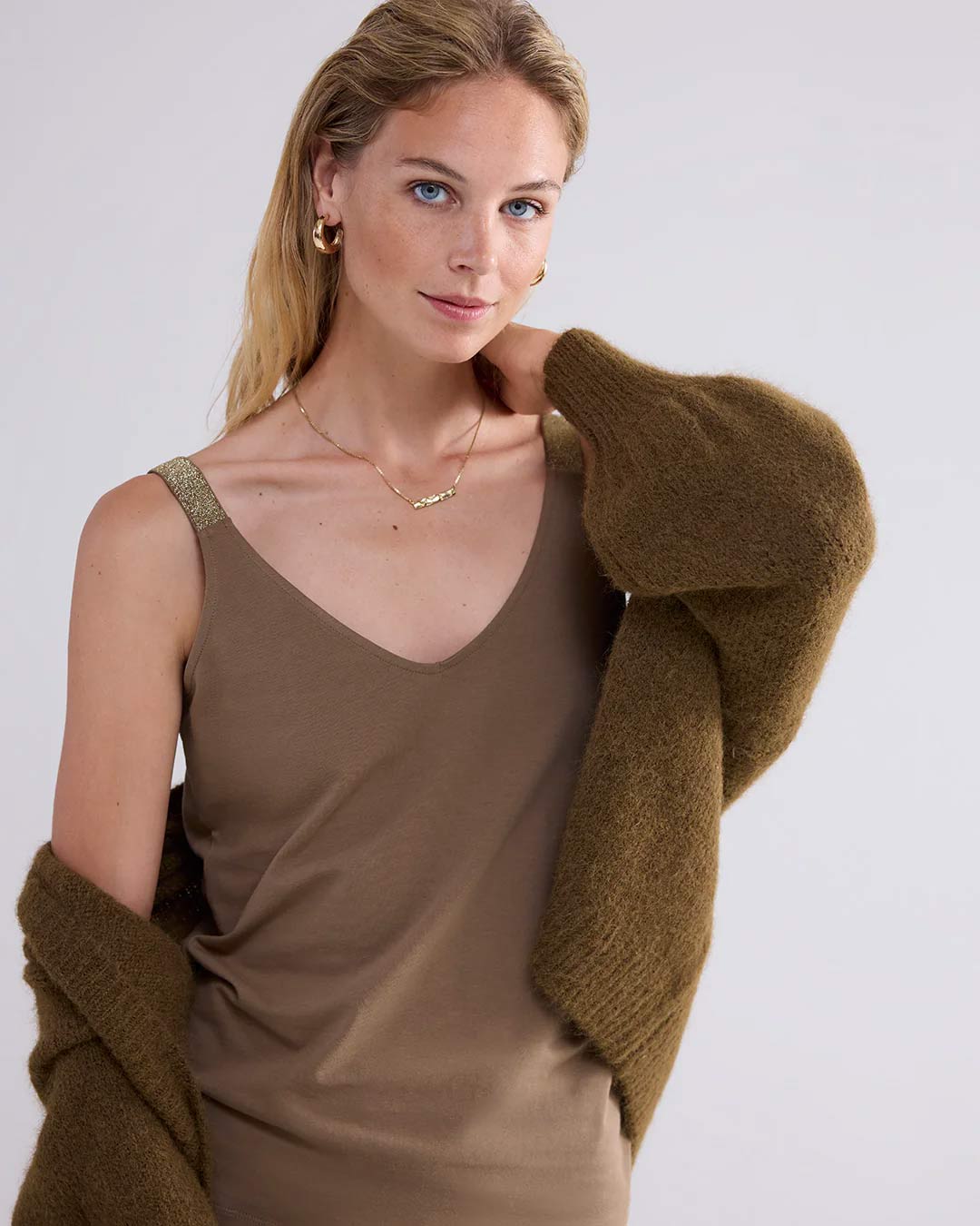 Classic vest top with glittery straps, which can be worn either way round. The vest top is made from stretchy cotton and has a slim fit.