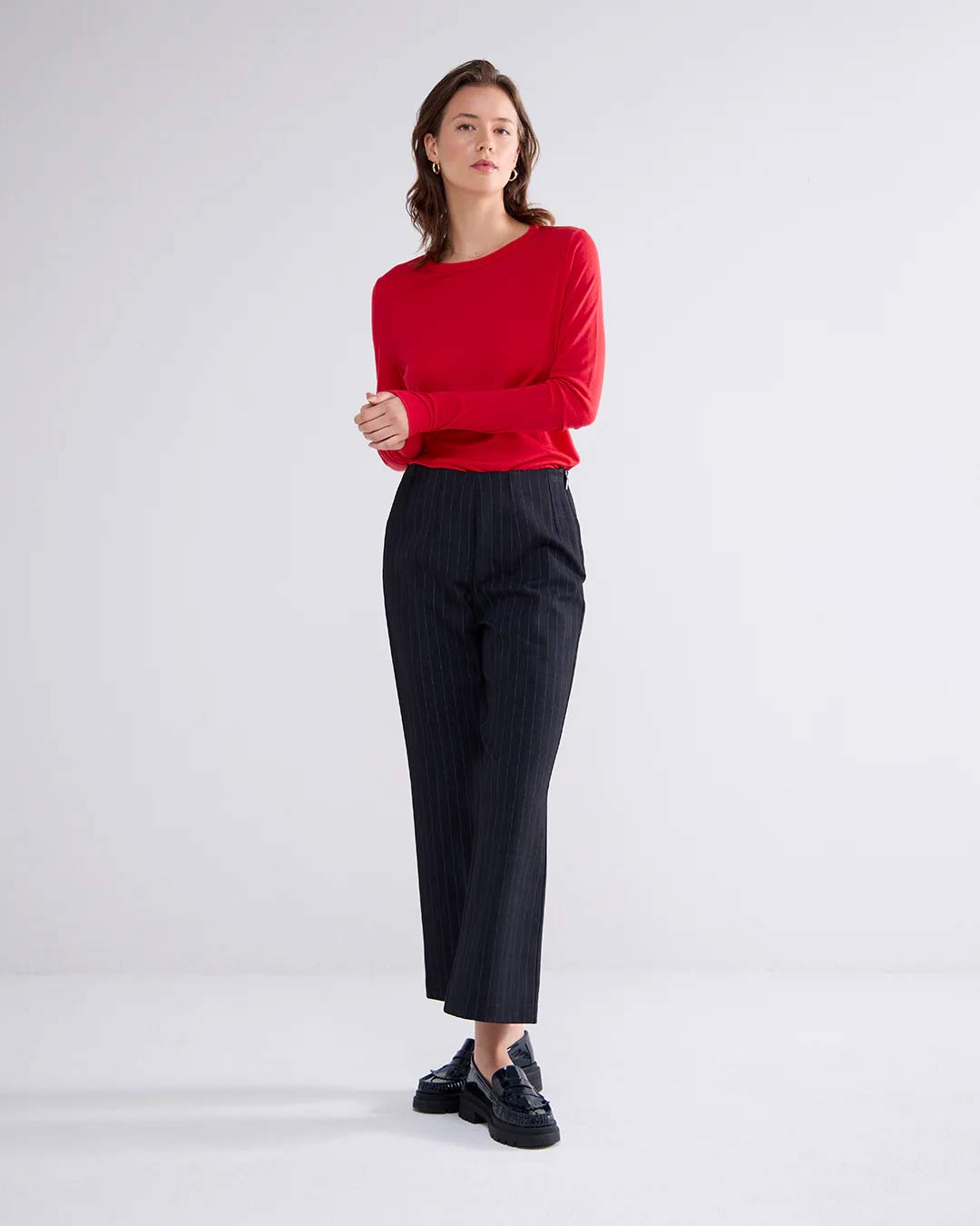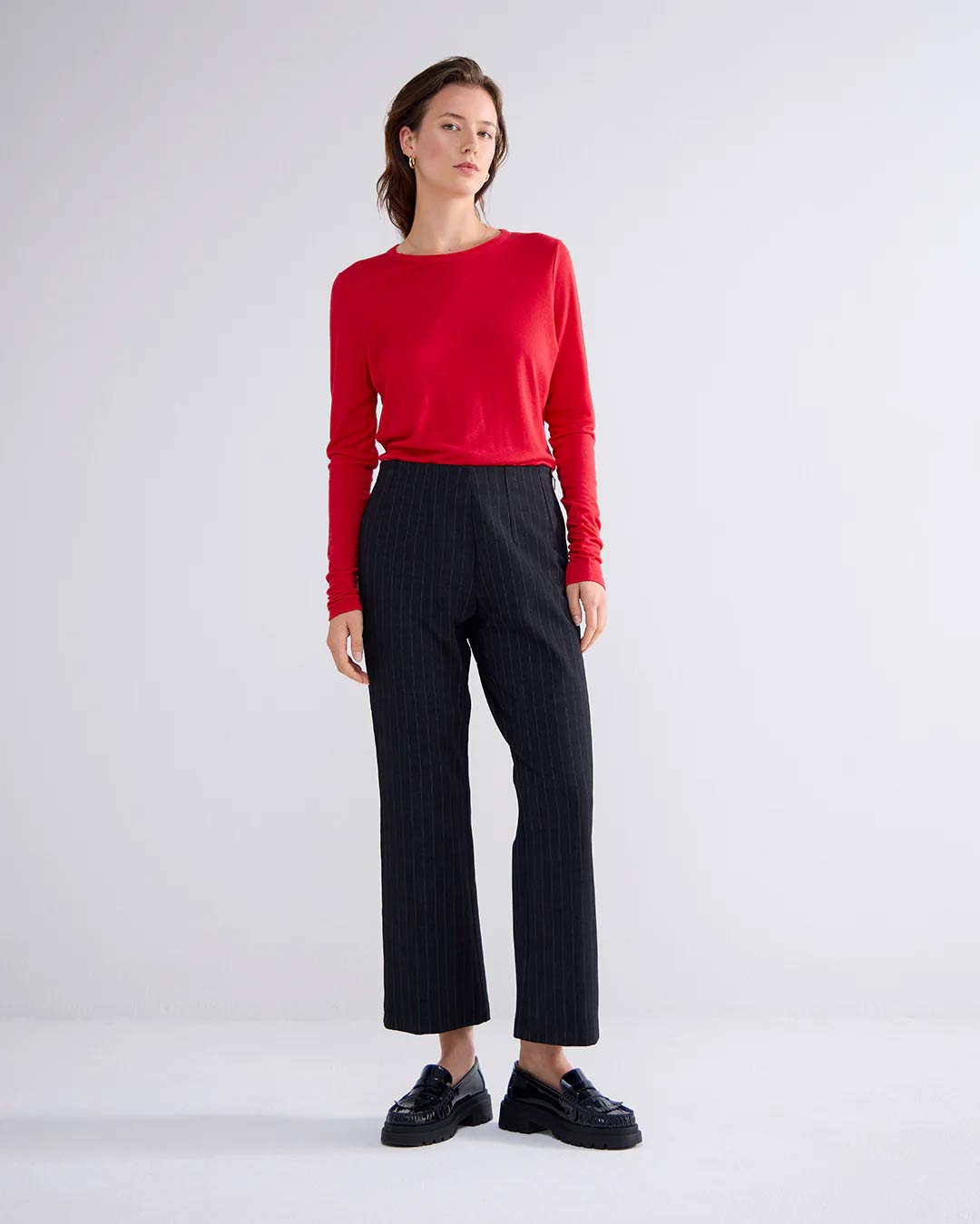 Slim-fit top with long sleeves, featuring a round neckline. Made of stretch jersey in a viscose-wool blend.