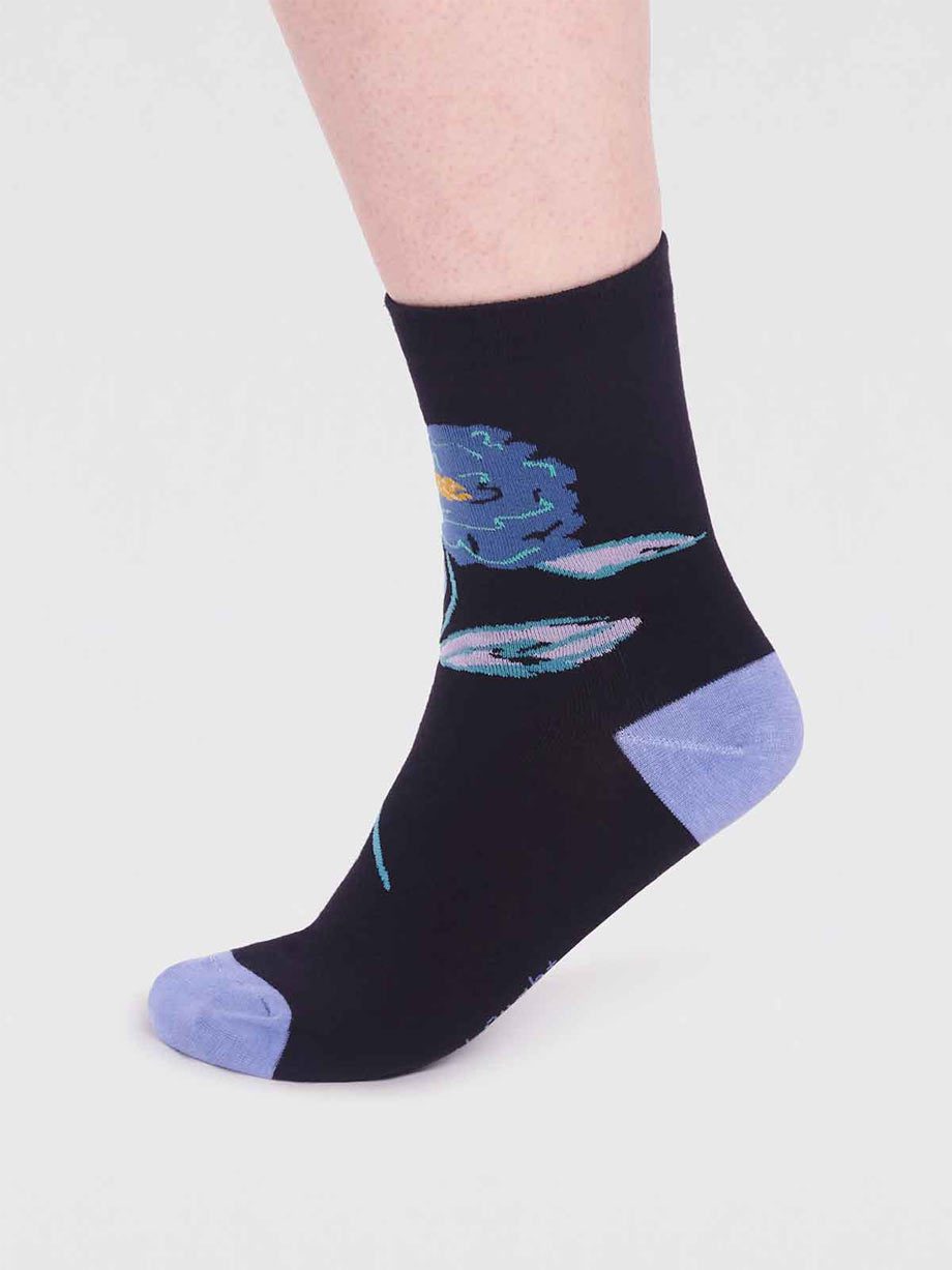 rossa gots organic cotton floral sock – Black